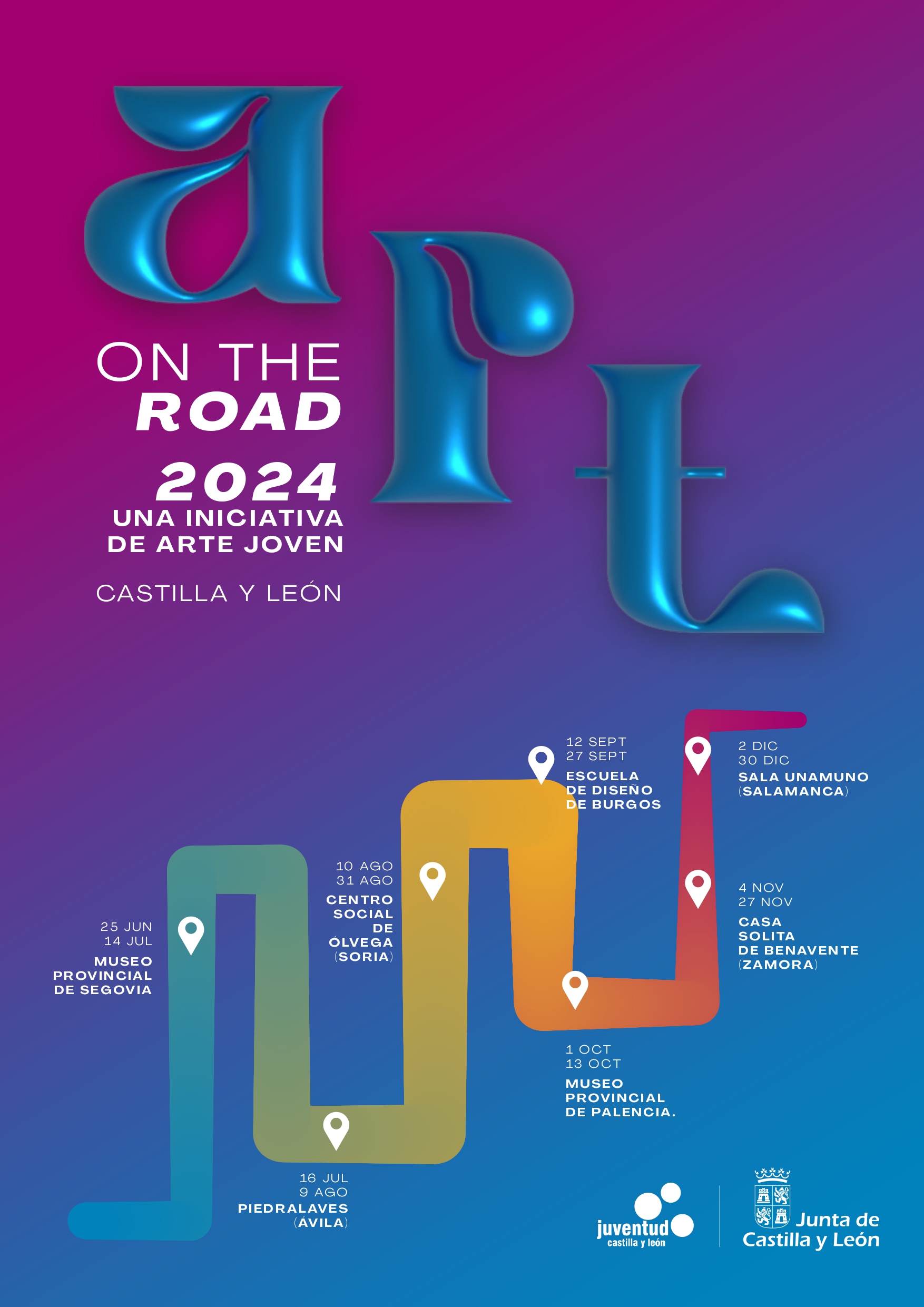 Este año, el talento joven de Castilla y León se embarca en un emocionante viaje artístico con ART ON THE ROAD 2024, una ruta itinerante que llevará las obras de los artistas emergentes de la región a diversos espacios culturales de prestigio. Este proyecto tiene como objetivo acercar el arte joven a todos los rincones de nuestra comunidad, permitiendo a más personas disfrutar del talento y la creatividad que están moldeando el futuro del arte.